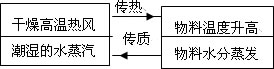 烘干機理: 物料的烘干過程中,熱風溫度越高與物料溫差越大,就越易于熱量的傳遞和水分的蒸發,從而使物料干燥加快,可獲得更好的傳熱效果。物料的烘干要不斷重復地完成一個循環過程。如圖2所示。